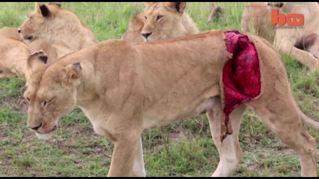 Sơ cứu sư tử bị rách toạc thân mình