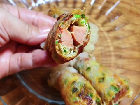 Bánh tráng cuốn trứng xúc xích