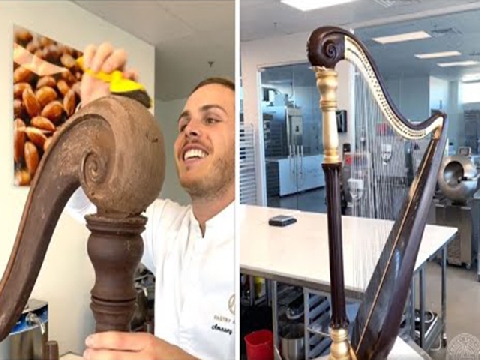 Amaury Guichon làm chiếc đàn hạc từ socola