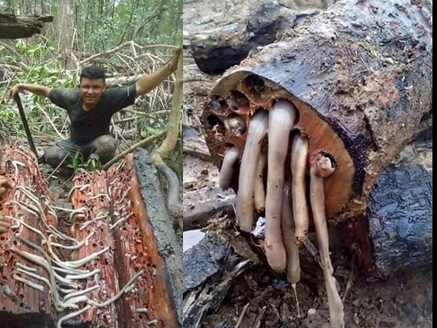 Đó là "quái vật" bí ẩn gì? Cùng mổ xẻ sinh vật siêu bí ẩn trốn trong thân gỗ ngâm dưới nước này.